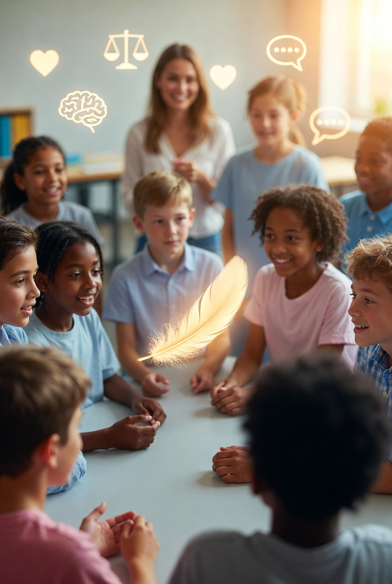 In a world of division, KidzKourtRoom™ transforms everyday school conflicts into leadership labs. No punishments, just repair and growth. Rooted in restorative justice, our Early Ethical Leadership Method™ (EELM) builds empathetic leaders, one feather at a time.